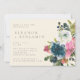 Den här bröllopsinbjudan innehåller en lush blommigt buquet i rik jeweltoner - marin, plommon, mjuk vit och dammig ro - som ställs mot en varm krämbakgrund. Klassiskt serif typsnitt ger en tidlös beröring, perfekt för romantiska utlandsceremonier eller formella trädgårdsbröllop. Ett vackert val för par att söka en elegant men ändå konstnärlig inbjudan till stil.