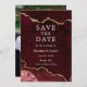 Modern Elegant Watercolor Burgundy och Guld Marble Agate Geode sparar datumkortet - Foto back