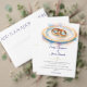 Gratulera till kärlek med den romantiska bröllopsinbjudan med guld bröllop ringar på en pastellplåt med gyllene ro accenter. En mjuk, poetisk perfekt för glam från eleganten eller bröllop med trädgårdsteman. Fullt anpassade med din egen text och information.