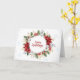 An elegant and festive greeting card featuring a stunning watercolor illustration of a circular holiday wreath. The wreath is composed of deep red poinsettia flowers, classic green holly leaves with vibrant red berries, white blossoms, pine needles, and subtle metallic gold and muted silver foliage accents. A central white circle provides space for the customizable script text "Happy Holidays." This design is perfect for family Christmas cards, corporate holiday greetings, or festive invitations. The clean white background with subtle snowflake detailing enhances the traditional and sophisticated aesthetic.