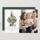 Fotokort för elegant helgdag med en festive water color Julgran, försedd med glasprydnadsämnen och omgiven av inslaget presenter. Anpassa kortet genom att lägga till en anpassningsbar hälsning, din familj namn, året och ett foto. Helgdag-kortet i Julgran går tillbaka till en solid mörk grönt bakgrund med subtil snöflingor.