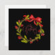 Send warm holiday wishes with this elegant hand-painted mistletoe wreath Christmas card, featuring original watercolor artwork and hand-lettered script that reads Merry Christmas. The rich black background makes the greens, reds, and soft gold accents glow beautifully, giving the design a festive yet sophisticated feel.