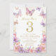 Elegant Watercolor One 3rd Birthday Butterfly Gir Inbjudningar