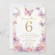 Elegant Watercolor One 6th Birthday Butterfly Gir Inbjudningar