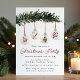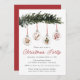 Invite guests to celebrate the season with this elegant watercolor Christmas party invitation featuring festive ornaments hanging from a pine greenery garland. Each ornament showcases a charming holiday detail — a gingerbread house, candy cane with cinnamon stick, Christmas tree, and a cozy cup of hot cocoa. “Christmas Party” is displayed in a handwritten red script with your party details below, creating a rustic yet refined design perfect for holiday gatherings.