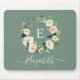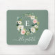 Modern Elegant Watercolor Pink Floral Wreath Mouse Pad includes pink roses, white flowers and beautiful botanical greenery. Sage Green Background. Personalized with your monogram initial and name in a Stylish script.