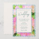 Elegant Watercolor Hydrangea Garden Wedding. This unique and original wedding invitation features a stunning, colorful impressionistic watercolor floral design. With gorgeous pinks, lime greens, and blues, it's perfect for an upscale summer garden themed wedding, Shown on a charming scalloped invitation style, change card style to your preference. Contact the designer with any customization questions.