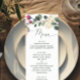 Elegant Watercolor Ro & Greenery. Blommigt Bröllop Meny