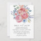 Höj bröllop-papperet med den här fantastiska, moderna inbjudan-mallen som innehåller originalfärgade vattenfärgsbilder av ro i mjuka peachy-rosa-toner, kompletterade med ömtåliga persiko- och dammiga blå blommigtar med sprit av sage grönt eukalyptus. Med en skarp vit bakgrund blandar designen helt enkelt romantisk elegans med en aning rustik charm. Perfekt för boho, trädgård, utomhus och elegant bröllop, den här mallen ger dig en ny känsla av tidlöshet för firande. Med det här anpassadet kan du enkelt anpassa namn, data och händelseinformation - skapa ett unikt och snyggt första intryck för din speciella dag.