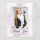 Tack vänner och familj för att de kom till studenten genom att skicka en snyggt fototack till vykortet. Tack vare studenten har du vykort en lila vattenfärgsbakgrund, Tack i ett trendig-skriptteckensnitt och platshållare för anpassningsbarnas text och bild.