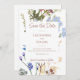 Meddela din speciella dag med den här eleganten spara datumkortet med mjuka vattenfärgade vilda blommor i en romantisk trädgårdsdesign. De känsliga blommigtarna och den klassiska typografin gör det idealiskt för vår eller sommar-bröllop med ett botaniskt, rustiskt eller utomhustema. Anpassa med namn-, datum- och anpassningsbar-meddelandet.
