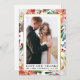 Elegant Watercolor Winter Blommigt och Greenery Bride och Groom Kärlek och Tack Bröllop Photo Tackor You Card innehåller röda poinsettias, vit ros, hollybär och botaniskt grönt. Guld Ram.