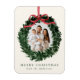 Elegant Watercolor Wreath with Bow Christmas Photo Magnet