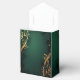 Elegantly designed wedding favor boxes of dark green and gold with your choice of colored ribbon. Personalize with the edit function to create your own message and style. There is matching invitation, photo backdrop and paper napkins in my Zazzle shop. Not just for weddings, can be used for birthdays, baby showers or any celebration.