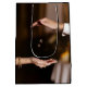 This luxury wedding gift bag features a poetic moment where two hands meet, gently surrounding floating wedding rings — a timeless representation of unity and promise.