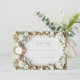 This RSVP card complements a luxurious wedding theme with its exquisite faux gold accents and delicate white roses arrangements.
