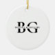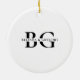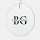 Elegant White and Black Monogram Initialer Bröllop Julgransprydnad Keramik
