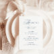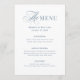 These simple and elegant wedding menus feature a mix of classic dusty blue text and classic, luxe calligraphy on a white background.