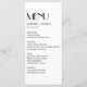 Ett menykort för elegant till din bröllop-middag. Det här svarta och vita kortet har en modern svart typografi med titeln Menu (meny). Anpassa med brudgummens namn, bröllop-datum och meny. All text framtill lämnas marginaljusterad.