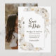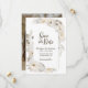 Informera dina vänner och nära och kära om ditt kommande bröllop med den här eleganten vita blommigt bröllop spara-till-datum. Med anpassadet kan du enkelt lägga till de uppgifter som behövs. Ditt favoritfoto av dig och din älskade kan finnas på baksidan och skapar denna spara-till-datum-helt unika. Det finns en mängd olika pappra typer och stilar i hörnet för dina unika inbjudningar, tillsammans med möjligheten att ladda ned om du föredrar ett digitalt format.
