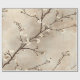This refined seamless pattern features delicate blossom branches flowing gracefully across the design. Thin dark branches extend in elegant lines, adorned with small white blossoms highlighted by soft golden centers, creating a light and airy botanical composition.