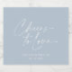 Lägg till lite elegans till dina bröllopsfavoriter med den här dammiga blå etiketten vin flaska. Med modern kalligrafi med frasen "Cheers to Kärlek" och anpassade namn och date, är denna minimalistiska design perfekt för champagne eller vin. Den här etiketten passar perfekt för bröllop, möhippor eller repetitionsmiddagar och lägger till en snyggt och en personlig detalj till firande.