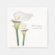 Den här blommigten för elegant har vit calla lilies. De vackra vita liljorna är kompletta med sina gröntar. Brödens och brudgummens namn är färg matchade med grönten från blomkålen. Det här är den perfekt elegant blommigt bröllop som är perfekt för alla bröllop-teman. Elegant calla-blomman bröllop napkin-design med modernt inslag. Det finns också möjlighet att matcha bröllopsinbjudningar och andra artiklar i kontorsartiklar.