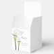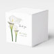 Den här blommigten för elegant har vit calla lilies. De vackra vita liljorna är kompletta med sina gröntar. Brödens och brudgummens namn är färg matchade med grönten från blomkålen. Det här är den perfekt elegant blommigt bröllop som är perfekt för alla bröllop-teman. Elegant Calla lily-blommans favoritbox med modernt inslag. Det finns också möjlighet att matcha bröllopsinbjudningar och andra artiklar i kontorsartiklar.