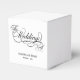 En formell, elegant vit bröllopsaffär med kalligrafi-skript.