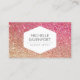 En elegant modern vit sexkantssymbol blir din logotyp på den här moderna designmallen för affärskort. Den glittrande peachy-bronze och den ljusa bakgrundsbilden av rosa ombre ger visuellt intresse och ger sig själv till en rad olika industrier och yrken. © 1201AM KREATIV, LLC