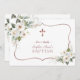 Unik design med vattenfärgade vita blommor runt ett faux ro guld ram, faux guld kor, modern kalligrafi, allt på vit bakgrund. På baksidan av tackmeddelandet, samma design. Använda Anpassa verktyg om du vill lägga till din information. Om du vill ha matchande artiklar kan du besöka min Baptism Christening Firande Collection.