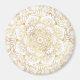 This Beautiful Mandala Flower Universe elements aesthetic design brings positivity and happiness to your special celebrations, unique events, or home decor. A Modern and Elegant white and faux gold floral mandala henna style, featuring a collection of golden sunflowers and leaves, various flowers, the universe, the sun, a crescent moon and stars, dots, and circles, forming a beautiful mandala flower, on a simple white background.