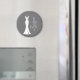 Konstruktionsmagnet mode tillverkad med klassad grått-bakgrund. En grafik som illustrerar en vit elegant som hänger på en hängare. Enkel minimalistisk utformning.