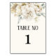 Modern blommigt bröllop-bordsnummer med guld och vit vattenfärg med blommor i vitt färg, enkelt och klassligt vinterbröllop. Underbar för modernt klassiskt vinterbröllop, vintage bröllop och formellt bröllop. Utforska fullt för matchande artiklar. Klicka på knappen Redigera om du vill anpassa designen ytterligare.