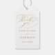 Dessa anpassningsbar, guld och vita minimalistiska bröllop-tack som du ger märkre kommer att ge dina favoritgåvor lite elegans. Den enkla designen har skripttypografi för elegant faux guld som läser "Tack" med namn och bröllop-datum att anpassa. Bästa önskemål för bröllop och giftermål! Designad av Susan Coffey.