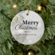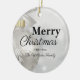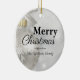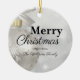 Fira helgdag med den här eleganten "God jul" fotomomento ornament. Den här fotodesignen för ditt helgdag Julgran har en vacker vit julprydnad med ett vitt band och snöflingor hänger mot en helt vit bakgrund. Anpassa med ditt namn på framsidan och baksidan och lägg till ett foto.
