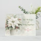 Julsäsongens älskade blomma, poinsettien, är vacker i alla dess utseende. Här är det elegant som en enda växt i silver färgad vas, omgiven av ömtåliga bär från säsong och lätta oliv grönt löv. Det är en vintage vattenfärg och en sådan söt syn. Det kommer att se vackert ut på ditt helgdag-kort för dina blomstrande vänner och släktingar. Hälsning är "Vi önskar dig ett God jul" i ett passande skript för grönt. Det är redigerbart. Se till att byta exempel på familj namn och datum till dina egna.