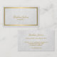 Classy luxury vintage style elegant calligraphy business card with a faux gold metallic frame over a white leather look background. ++++++++++++ Suitable for exclusive beauty salon, luxurious boutiques,beautician, interior designer, makeup artist, hair stylist.