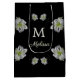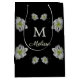Vackra vita liljor blommönster, elegant vita blommor med svart bakgrund. Personlig monogram och namn. Vit lilykonst, blommönster. Anpassningsbar vit text med gröntens skugga. Rena vita liljor, blommor, mönster, svart bakgrund, monogram och namn, vita och grönt brev. Vackra gåvor till kvinnor. Vackra gåvor till blomman älskare.