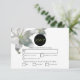 Den här designen har vita blommor. Den vackra eleganten vita liljor är en komplimang till elegantens svarta moderna cirkel som omger titeln. En perfekt som förenar modern och chic med färg-tonerna i grönt. Grönt, svart och vitt är en perfekt som matchar en elegant blommigt horn som kallas bröllop. Unik kontokortsdesign för bröllop OSA med modernt inslag. Det finns också möjlighet att matcha bröllopsinbjudningar och andra artiklar i kontorsartiklar.
