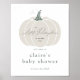 Elegant White Little Pumpkin Fall Baby Shower Poster