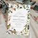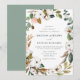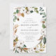 Elegantens bröllopsinbjudningar för blommigt med dina bröllop-uppgifter omgivna av en vattenfärgad vit magnolit, blommor av rosa, grönt och brunt löv samt bomullsblommor. De rustiska bröllopsinbjudningarna i blommigten är perfekt för ditt vår, sommar eller faller bröllop.
