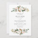 Bröllopbjudanden till blommigten i elegant som innehåller dina bröllop-detaljer som accentueras av en överkant och grund gräns av vattenfärgade vita magnolier, blommor från rosa, grönt och brunt löv samt bomullsblommor. De rustiska bröllopsinbjudningarna i blommigten är perfekt för ditt vår, sommar eller faller bröllop.