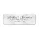 Elegant White Marble Bröllop Return Address Label. med brid och grooms namn i grått elegant Classic script med adress i grått Classic serif font stil på vit marble-bakgrund.