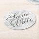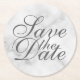 Elegant White Marble Bröllop spara datum Underlägg Papper Rund