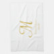 Enkel Elegant Vita och Guld Monogram Kökshandduk för Namn