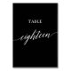 Den här eleganten vit på svart kalligrafi bord arton-bordsnummer är perfekt för ett enkelt bröllop. Neutraltens utformning har ett minimalistiskt kort som är dekorerat med romantisk och visuell typografi. Kortet skrivs ut på framsidan och baksidan (dubblan). Andra bordsnummer i samlingen säljs separat.