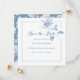 This save the date card offers a beautiful reminder of the upcoming wedding date. A touch of calligraphy brings a refined and graceful feel. The soft dusty blue tone introduces a serene, airy mood. A subtle floral detail with white roses adds a gentle romantic accent. The design fits perfectly with classic wedding aesthetics while remaining light and contemporary. Its layout feels modern, giving the card a fresh, polished look. The overall impression is elegant and thoughtfully balanced. Easy editable template – you can change the text, font, and color palette while keeping the professionally designed layout.