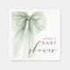 Complete your sophisticated party theme with these elegant, personalized baby shower napkins. The design features the collection's signature, ethereal watercolor bow in a trending sage green hue, set against a clean white background. Easily customize the text with the mother's name, making it a perfect complement to your gender-neutral or rustic-chic baby shower decor. These napkins are an essential detail for a beautiful, cohesive table setting.