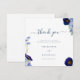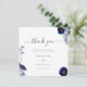 Den här elegant snyggt-bröllopen är ett tack för att du har kort som är perfekt för en blommigt i Bho sommar bröllop. Med ett vackert typografiskt skript som anpassar anpassningsbarnas tack till ditt budskap, får du namn och bröllop-datumet som du använder med hjälp av mallarna för enkel använda. Unika mjöliga blommor, inklusive kornblommor, kosmos och glöm mig inte med ömtålig blad som konstnären Catherine Sweetman målat upp i kornblomsblå, blått, marinblått, lila och grönt. Idealisk för den botaniska trädgården eller utomhusträdgården vår sommaren bröllop tackar er. Sök efter matchande objekt i den moderna vildblomman Blue bröllop-sviten